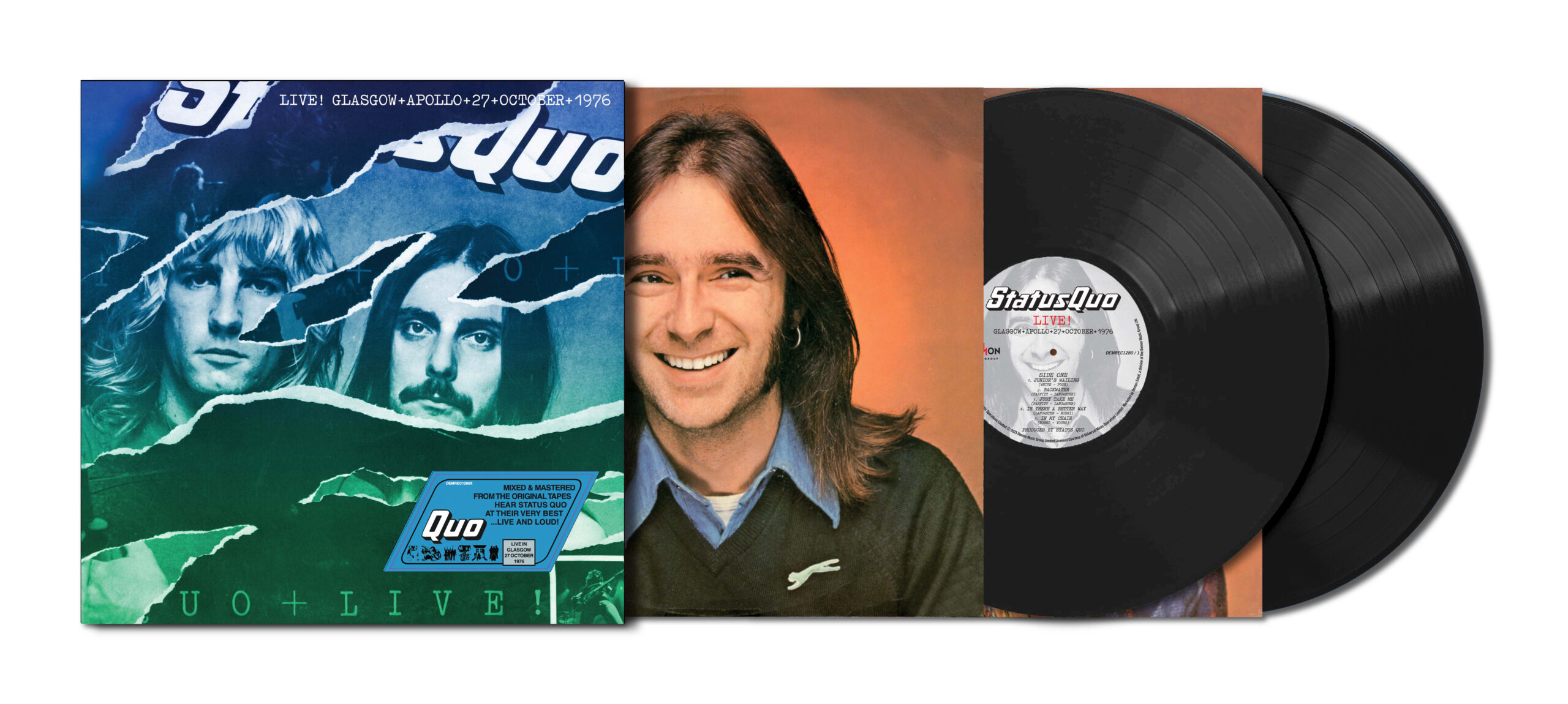 Live! was the first live album that Status Quo released commercially. The original release in 1977 was recorded over 3 nights between 27th and 29th October 1976, recorded using the Rolling Stones Mobile Studio.
